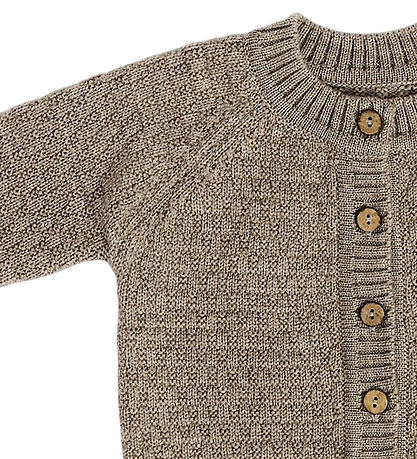Charming cardigan from Smallstuff in plain beige. The Cardigan features an elegant ribbed structure at the neck, sleeves and bottom. The button closure at the front emphasizes a classic design, and the fine buttons add a subtle touch. The Smallstuff cardigan has a comfortable fit with long sleeves that give a timeless look. The Cardigan is made of a knitted quality of soft merino wool.