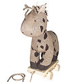 Cute Smallstuff pull along toy in a knit quality shaped like a giraffe in pink with glitter spots.
