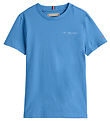 Fresh Tommy Hilfiger T-Shirt with short sleeves in a ready blue colour, adorned with a discreet logo print on the front. The T-Shirt combines style and comfort, making it a timeless choice for any wardrobe.