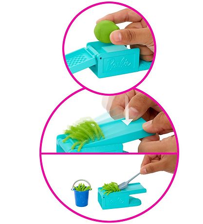 The Barbie doll set provides many hours of fun and play. The dark-haired Barbie doll can spend several hours on the farm with sine cute animals. The included play dough can be shaped like an egg or placed in the press so that it is shaped like a blade of grass. The kid can let his imagination run wild and invent new games all the time.