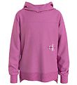 The Calvin Klein hoodie has long sleeves and a fixed hood. In the life and arm openings there are wide ribbed edges, and the hoodie is in a nice and stretchy cotton quality.