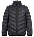 The Color Kids quilted jacket opens with a zipper with chin guard and internal wind pole, and there are two snap pockets on the front. The waist opening has an internal elastic edge.