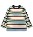 The Hust and Claire blouse has long sleeves with wide ribbed edges and a round neckline with a wide ribbing. The Blouse also has a nice ribbed edge in the waist opening and can be opens on the left shoulder with its fine wooden buttons. The Blouse is made in a soft and comfortable knit quality.