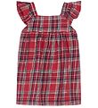 The Hust and Claire dress is sleeveless and has a nice round collar. The Dress is cut at the waist, which gives fine wrinkles and good width to the skirt. It closes with buttons on the back and has fine buttons on the front as a decorative detail. The Dress is made in a light and tightly woven quality.