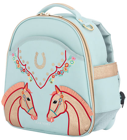 Nice Jeune Premier preschool backpack in light blue with a beautiful and colorful horse print.