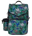 Cute Jeva school backpack in green with an all-over print of dinosaurs in different colours.
