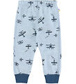 Elegant Joha leggings in a classic blue shade with a smooth surface. The Joha leggings have an elasticated edge and are finished with wide ribbed edges at the ankles.