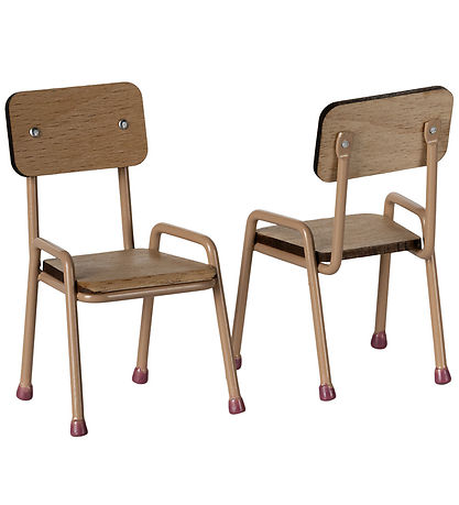Nice Maileg doll furniture set with a table and two chairs in a dark, powder rose color theme. The doll furniture set is in wood and metal.