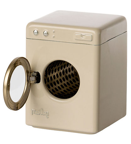 Beautiful Maileg Miniature washing machine in off white. Washing machine is made of metal with a door that can open and close.