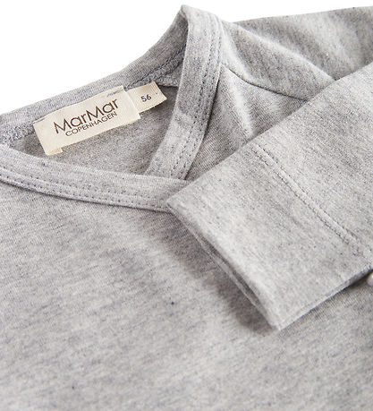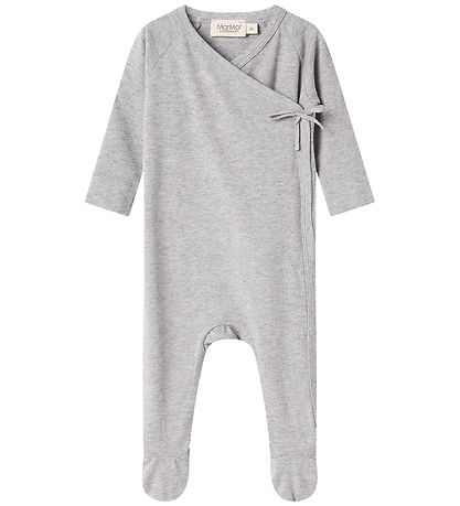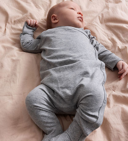Elegant MarMar jumpsuit in a melange light grey. The jumpsuit has long sleeves and long legs with fixed feet, ensuring a full-coverage fit.