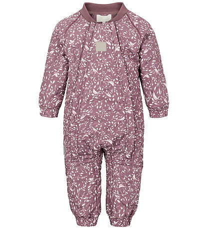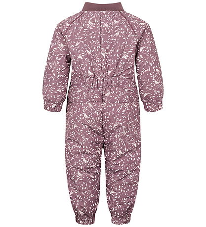 Cute MarMar thermo suit in purple with an allover print in pink with leaves and birds.