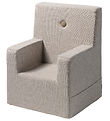 The reclining chair can be folded with just one hand so that it is completely flat and can be easily stored away, and it is made of a lightweight material, so it is easy to handle. The cover can be removed and machine washed, and it is made from recycled materials.