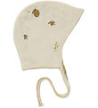 The Meri Meri booties have small ears on top, and they have an elastic edge around the opening, which ensures a good fit. The Baby hat also has small ears on top and it can be closed with a button under the chin.