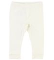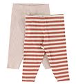 Stylish Minymo leggings with horizontal stripes in red and white. The Leggings have a ribbed structure and two heart-shaped buttons at the front. They have a comfortable fit and wavy edges at the leg openings.