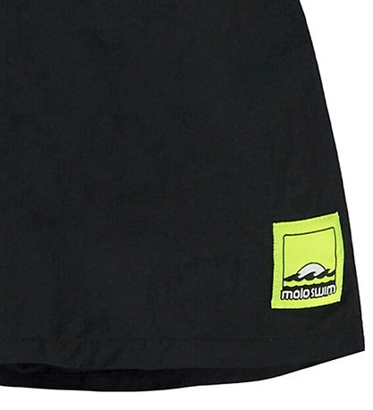 Beautiful Molo swim shorts in black with a logo on the left thigh in neon yellow. The swim shorts have a good elastic at the waist, which can be adjusted with a lace. There is a practical pocket on the back. Inside there is a net with elastic in the leg openings.