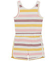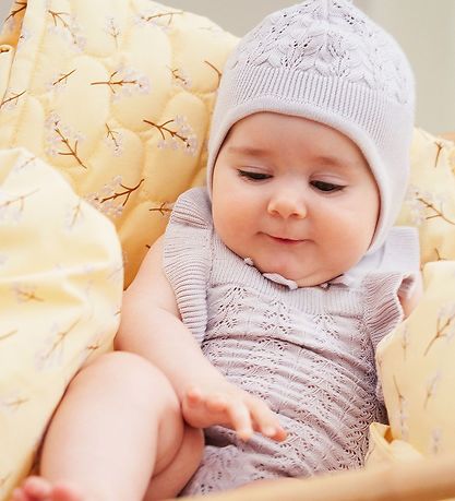 Beautiful Müsli summer romper in a dusty purple knit structure, with a fine pointelle all over.