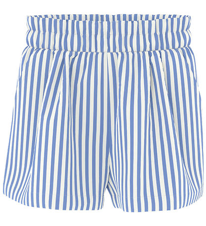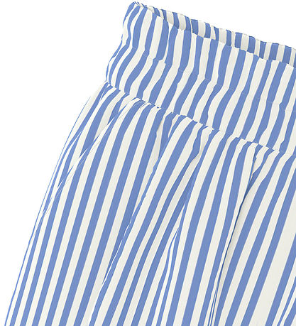 Elegant Name It shorts with vertical stripes in blue and white. The Name It shorts have a practical elastic waist and open pockets on each side. The Shorts are made of a soft and comfortable quality of Lenzing Ecovero viscose.