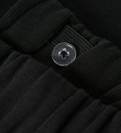 Stylish Name It sweatpants in a classic black colour with a smart print on one thigh and on the open back pocket. The sweatpants have a comfortable elastic edge waistband, which is adjusted with internal buttons. The Name It design has a loose fit and the sweatpants have soft brushed cotton on the inside.