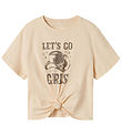 Beautiful Name It t-shirt in a bright, orange shade with short sleeves and a nice knot detail. The Name It t-shirt has a large print with the text “LET'S GO GIRLS” and a cowboy hat on the front, which gives a smart look.