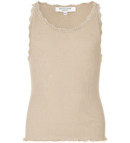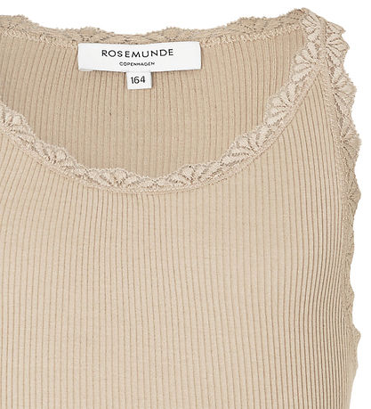 Fine Rosemunde top in beige ribbed quality with fine lace edges.