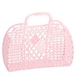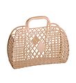 The Sun Jellies Jellie's folding basket consists of one large, open space. At the top there are two good handles and the bottom is stable so the basket can stand on its own. The basket can be folded out so that it is completely flat and therefore easy to store and transport. When the basket is to be used, it is quick to unfold the basket again, as the simple system is easy and fast. The basket is in soft plastic and can be used for everything from a beach trip to a shopping trip.