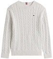 Elegant blouse from Tommy Hilfiger in white with long sleeves. The Blouse has a fine structure with a discreet pointelle, which adds a nice pattern to the simple design. On the chest you can see Tommy Hilfiger's iconic logo, which adds a discreet touch.