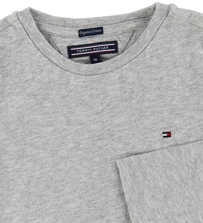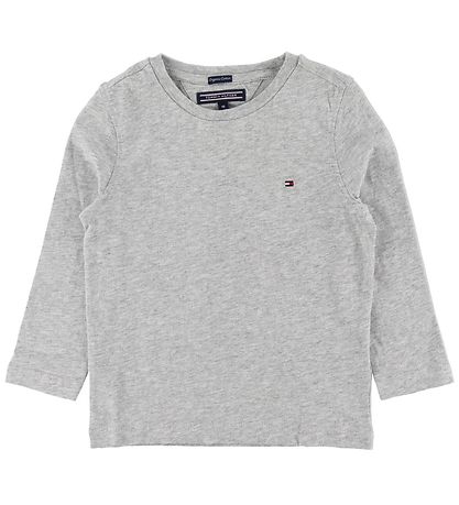 Fine Tommy Hilfiger long sleeve top in mottled grey with the classic Hilfiger flag embroidered on the left side of the chest.