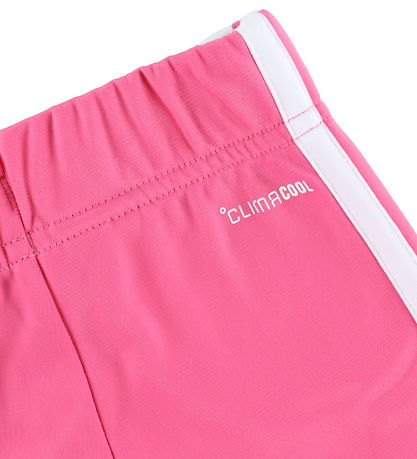 Beautiful adidas Performance tracksuit in a bright pink, combined with white details. The Tracksuits bears the iconic adidas logo and the characteristic three stripes along the sleeves and trouser legs.