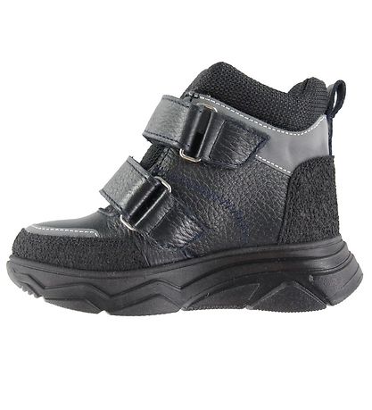 Cool Angulus winter boots in black leather with rough details and reflections on the upper.