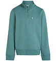 Nice Calvin Klein sweatshirt in plain dark turquoise, with a little, embroidered logo application on the left chest.