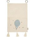 Beautiful Cam Cam Copenhagen storage baskets, which on one side have light brown and white stripes and light blue, small dots, and on the other side are in uniform light blue. The storage baskets have a quilted structure, and the edge can be folded down to give a nice look.