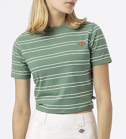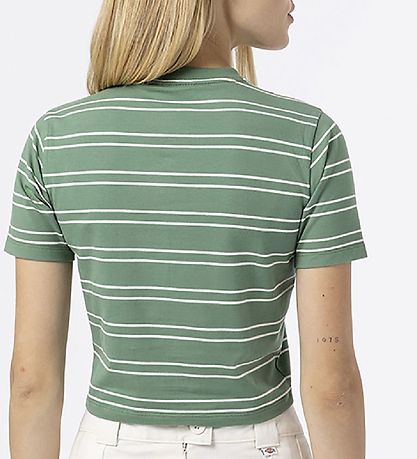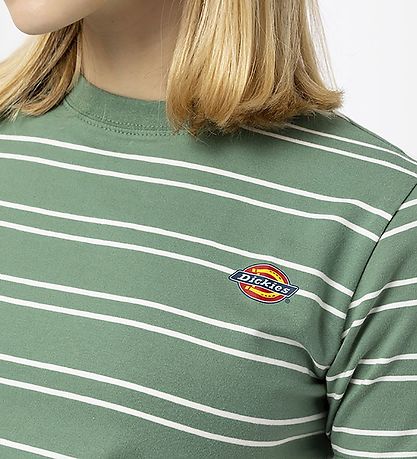 Nice Dickies t-shirt in green with narrow, horizontal stripes in white.