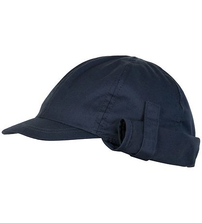 En Fant sun hat has a round head shape, and a sewn-in elastic at the neck, which ensures a good fit. In front there is a narrow, fixed brim, and behind there is a long neck shade which shields the sun's rays. The shade at the neck can be rolled up and held in place with Velcro straps, so the sun hat can be used as a regular cap.