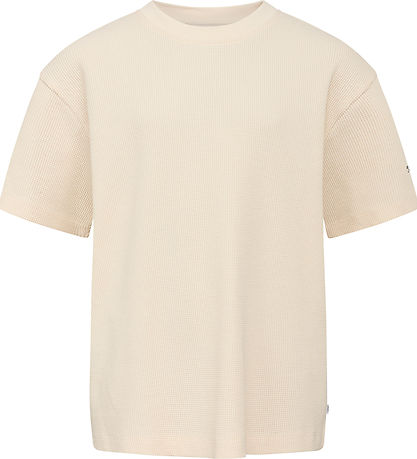 Fine Grunt t-shirt in plain cream white with a fine waffle fabric texture.