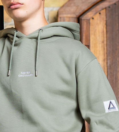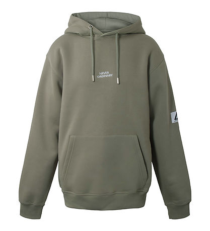Nice Hound hoodie in army green with the text "Never Ordinary" embroidered on the front in white.