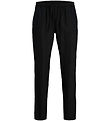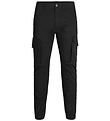 The Jack & Jones trousers have long legs with elastic edges and opens at the front with a button and zipper. At the waist, there is an adjustable elastic edge inside and practical belt straps on the outside. At the front there are two open pockets on the sides, with a little coin pocket on the right side and at the back there are two flap pockets which close with a decorative button in a wooden look. The Trousers are made in a soft and stretchable quality.