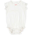 Adorable Konges Sløjd summer romper in a soft, pink shade decorated with colorful hearts. The Summer romper has long sleeves with elastic gathers at the wrists. The roomy fit is complemented by push buttons between the legs, which makes it easy to put on and take off.