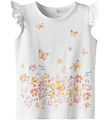 Charming Konges Sløjd top in a light beige shade with small heart prints in red. The top has a classic round neckline with a nice bow, which adds a sweet touch. The light ruffle details at the bottom contribute to a nice and elegant style.