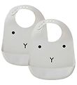 Fine Liewood bib, sold in a 2-pack, in grey with eyes and nose of a rabbit.