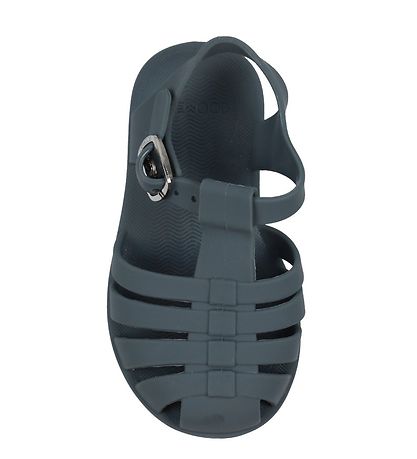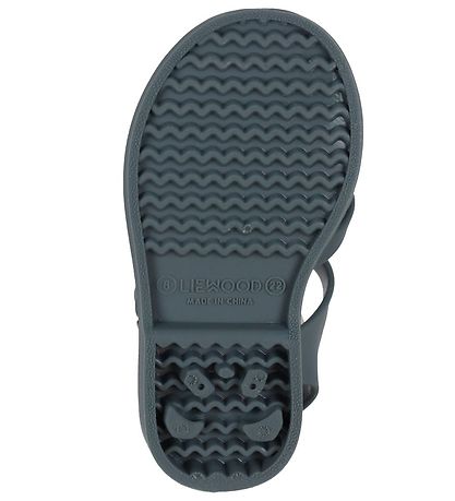 The Liewood flip flops are closed at the toes, and over the feet there is a beautiful, braided pattern. Behind the ankles there is a narrow strap, and the flip flops are tightened around the ankle with a narrow band with a silver-colored buckle. On the back of the buckle there is a practical push-botton, which makes it easy to take them off and on. The Flip flops have a flexible outsole, and on the underside there are large knobs, which provide a good foothold.