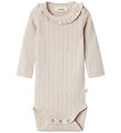 Cute Lil' Atelier bodysuit in light beige rib with a print of brown leopards. The Bodysuit has a round neckline with two pull buttons at the front and a little chest pocket. It has long sleeves and practical push buttons between the legs.