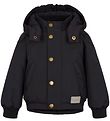 The MarMar winter coat has a detachable hood that is fastened with push buttons along the high neck collar. The hood has an elastic edge edge at the top and push buttons at the bottom, so it can be closed under the chin. The Winter coat has soft ribbed edges in the arm and neck opening as well as in the bottom.