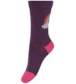 Cute Melton socks in purple with a fun popcorn print and contrasting colors in red.