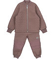 Smart Mikk-Line thermo set with fleece consisting of a thermo jacket and a pair of thermo trousers in dusty purple in a smooth-woven quality and with a quilted structure.