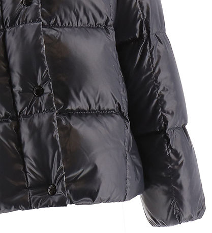 Lovely Moncler down jacket in navy in a smooth woven quality with horizontal stitching.