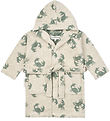 The Müsli bathrobe is made of lovely, soft terrycloth and has long sleeves and a fixed hood. The Bathrobe has two open pockets on the stomach, and at the waist there is elastic at the back and a wide drawstring at the front. At the collar there is a button.