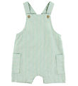 The Name It overalls have wide shoulder straps, which opens with a button on the front, with two settings. The Overalls have short legs and on the front there is an open chest pocket. In the leg openings, there are smart folds and the overalls are slightly stretchable.