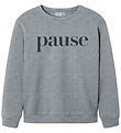 Stylish Name It sweatshirt in a classic, grey melange colour with the text "pause" in a darker shade. The Sweatshirt from Name It has long sleeves and a round neckline, which gives a timeless and pale look.