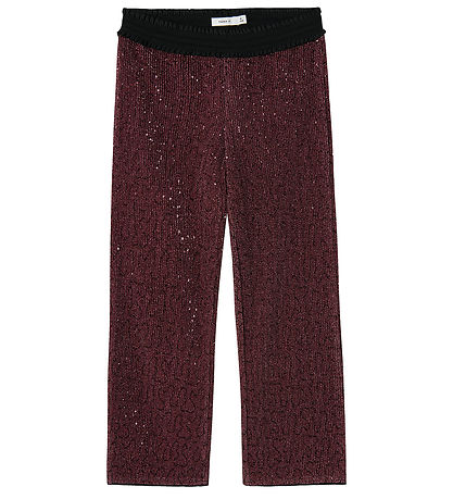 Stylish Name It trousers in a nice shade of red with a glittery look that adds a festive touch. The Trousers have a comfortable elastic waist for optimal comfort and fit.