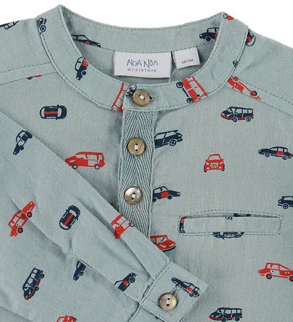 Smart Noa Noa miniature jumpsuit in light blue with an allover print of red and dark blue cars.